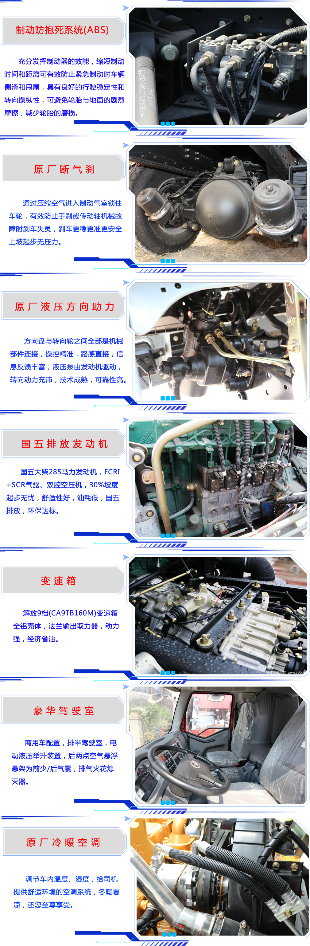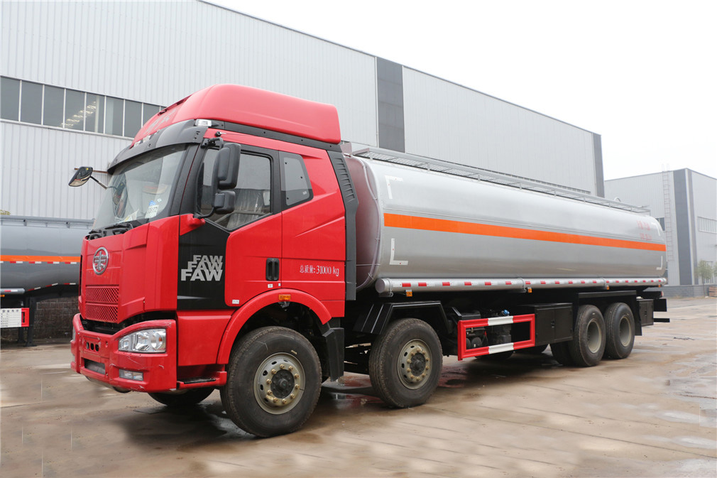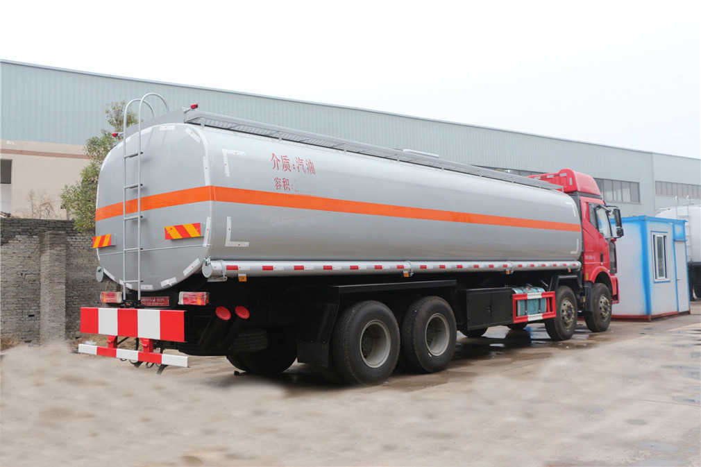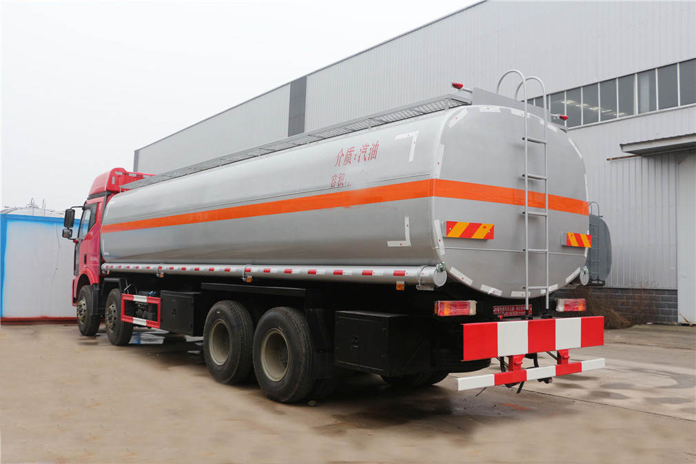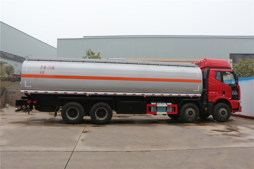 | 其他 | 该车适用于危险品运输。运送介质品名:柴油,煤油,汽油密度分别为830,800,750千克/立方米;类项号:3;罐体有效容积:23.7立方米,罐体外形尺寸(长×长轴×短轴)(mm)为:8700×2440×1640。防护材料:Q235碳钢,连接方式:左右侧面及后部防护均采用焊接连接,后部防护断面尺(mm):100×50, 后部防护离地高度(mm):470。仅采用底盘子午线轮胎和带ABS的底盘,该车前轮安装盘式制动器,前置排气管,装配限速装置,限速79km/h。安装带有卫星定位功能的行驶记录仪。随底盘选装平顶驾 | ||