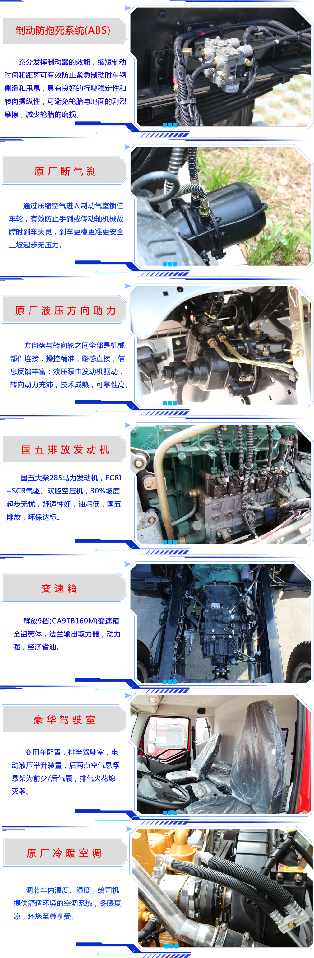 | 其他 | 该车适用于危险品运输。;类项号:3;罐体有效容积:31.5立方米,罐体外形尺寸(长×长轴×短轴)(mm)为:8750×2480×1780。防护材料:Q235碳钢,连接方式:左右侧面及后部防护均采用焊接连接,后部防护断面尺(mm):100×50, 后部防护离地高度(mm):470。仅采用底盘子午线轮胎型号(11.00R20 16PR,12R22.5 16PR)和带ABS的底盘,该车前轮安装盘式制动器,前置排气管,装配限速装置,限速79km/h。安装带有卫星定位功能的行驶记录仪。随底盘选装平顶驾驶室。ABS系 | ||