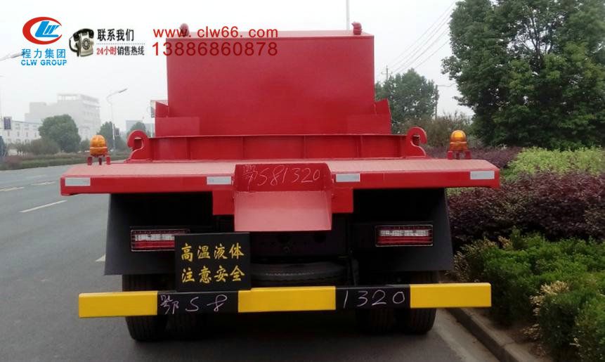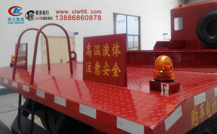 該車(chē)標配變速箱檢查蓋,方便維修及保養,帶裝沙槽,帶備胎,11.00-20鋼絲胎。高低檔變速箱,發(fā)動(dòng)機240馬力,起步穩,更安全。電瓶及油箱頂部均帶防護罩帶隔熱功能,底板帶抬包部分前、后板為Q235花紋板(起防滑作用),中間及四個(gè)掛鉤支撐點(diǎn)為14mm板,底板帶50MM厚巖棉隔熱層,四個(gè)加強掛鉤,承重部分用加強槽鋼構架,貼反光條,抬包圈做活動(dòng)的用螺絲固定方便拆卸、移動(dòng),,該車(chē)前部帶裝沙槽,后部帶警示牌,車(chē)輛左右各一個(gè)爆閃警示燈。