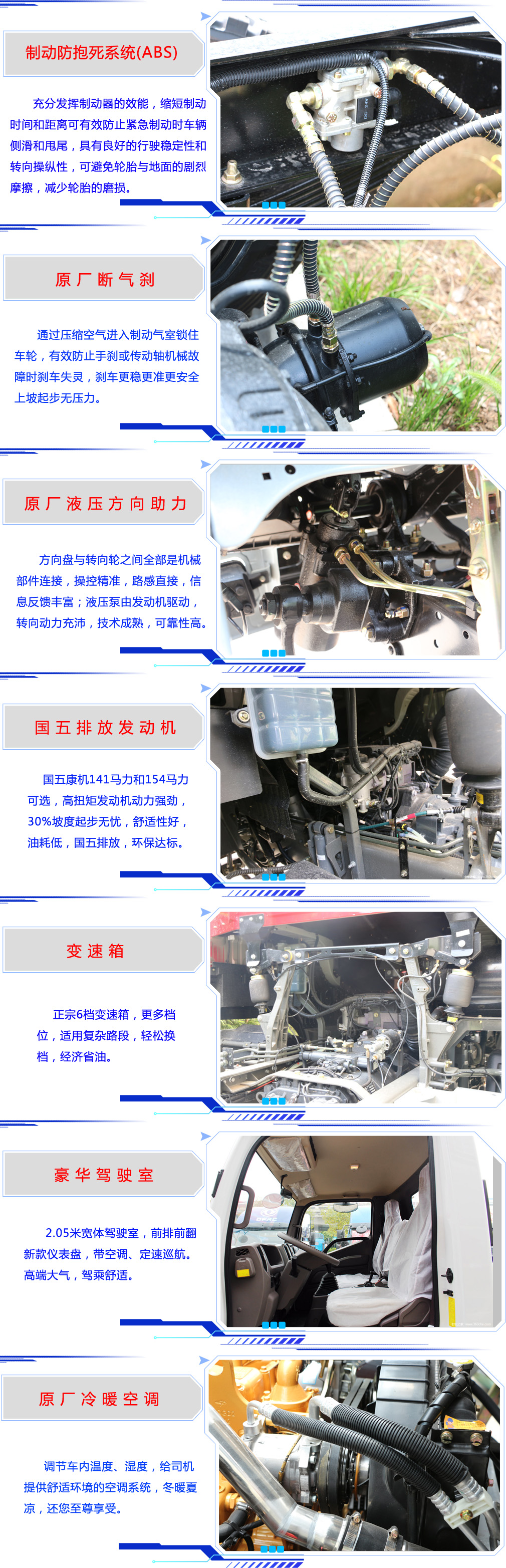 | 其他 | 货厢顶部封闭,不可开启,选装导流罩,选装单、无侧开门.选装同等功率制冷机组,外观形状可不同.选装液压尾板,收起状态的水平长度300mm.ABS厂家:威伯科汽车控制系统(中国)有限公司,ABS型号:44600XXXX0.侧防护与货箱横梁的连接方式是螺栓连接,侧防护材料为冷板B-2.0;后防护与车架纵梁的连接方式是螺栓连接,后下部防护装置材料为冷板B-2.0矩形.后部防护装置截面尺寸100mm×50mm,后防护离地高480mm.ISF3.8E6154发动机对应油耗值:21.3L/100km. | ||