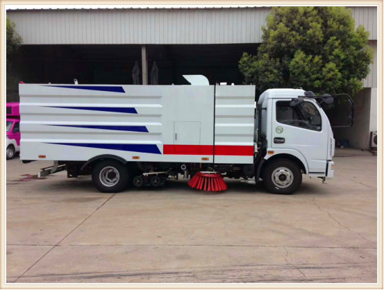 1、東風(fēng)多利卡洗掃車(chē)采用洗,掃,吸,混合的方式收集垃圾,濕式除塵、電液PLC一鍵控制,液壓傾翻卸料的作業(yè)方式對路面進(jìn)行清掃作業(yè)。
