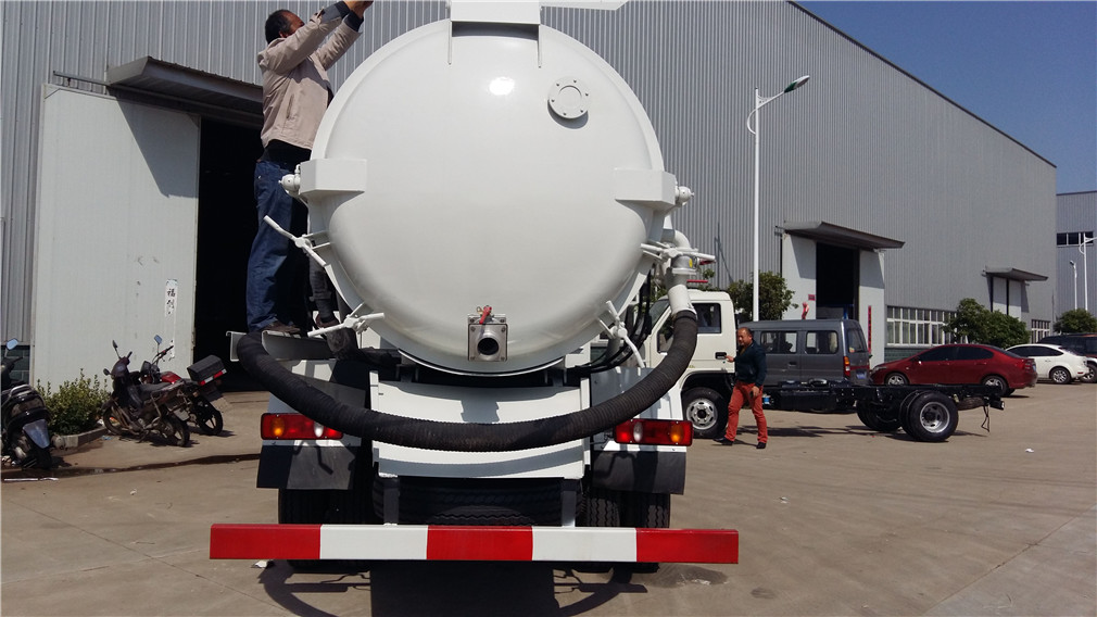 | 其他 | 该车用途为吸污清洗,主要装置为罐体.1、随底盘选装前雾灯,驾驶室前脸扰流罩为选装件.选装卧铺侧窗装饰板。罐体侧部选装工具箱,罐体两侧选装管箱,后部选装卷盘。选装罐体。2、介质: 液态悬浮污物,密度800千克/立方米。罐体有效容积9.45立方米。整车长/轴距(mm)对应关系:8000/4500,8200/4700。罐体外形尺寸(直段长×直径)mm4270×1700。侧后防护装置材料材质:Q23A5,侧防护及后防护焊接连接,后部防护装置断面尺寸(宽×高)50×100(mm),后防护离地高度:490mm。ABS | ||