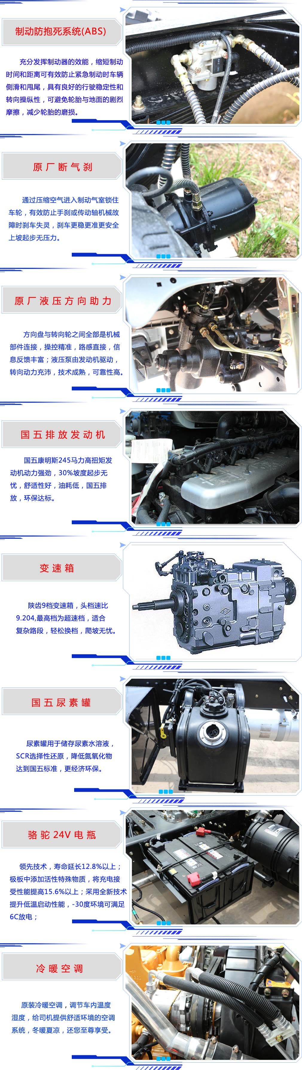 | 其他 | 1.运输介质:液态污物,密度:800千克/立方米,罐体有效容积:15.48立方米;罐体尺寸(直段长×直径)(mm)为:5500×2000。2.文字喷涂位置和车辆颜色可变化。3.防护材料:Q235A碳钢,连接方式:左右侧面与大梁采用焊接连接,后下部防护均采用焊接连接,后部防护断面尺寸(mm):120×50,后部防护离地高度(mm):480, 4.ABS型号为ABS-E 4S/4M,生产厂家为威伯科汽车控制系统(中国)有限公司。 | ||