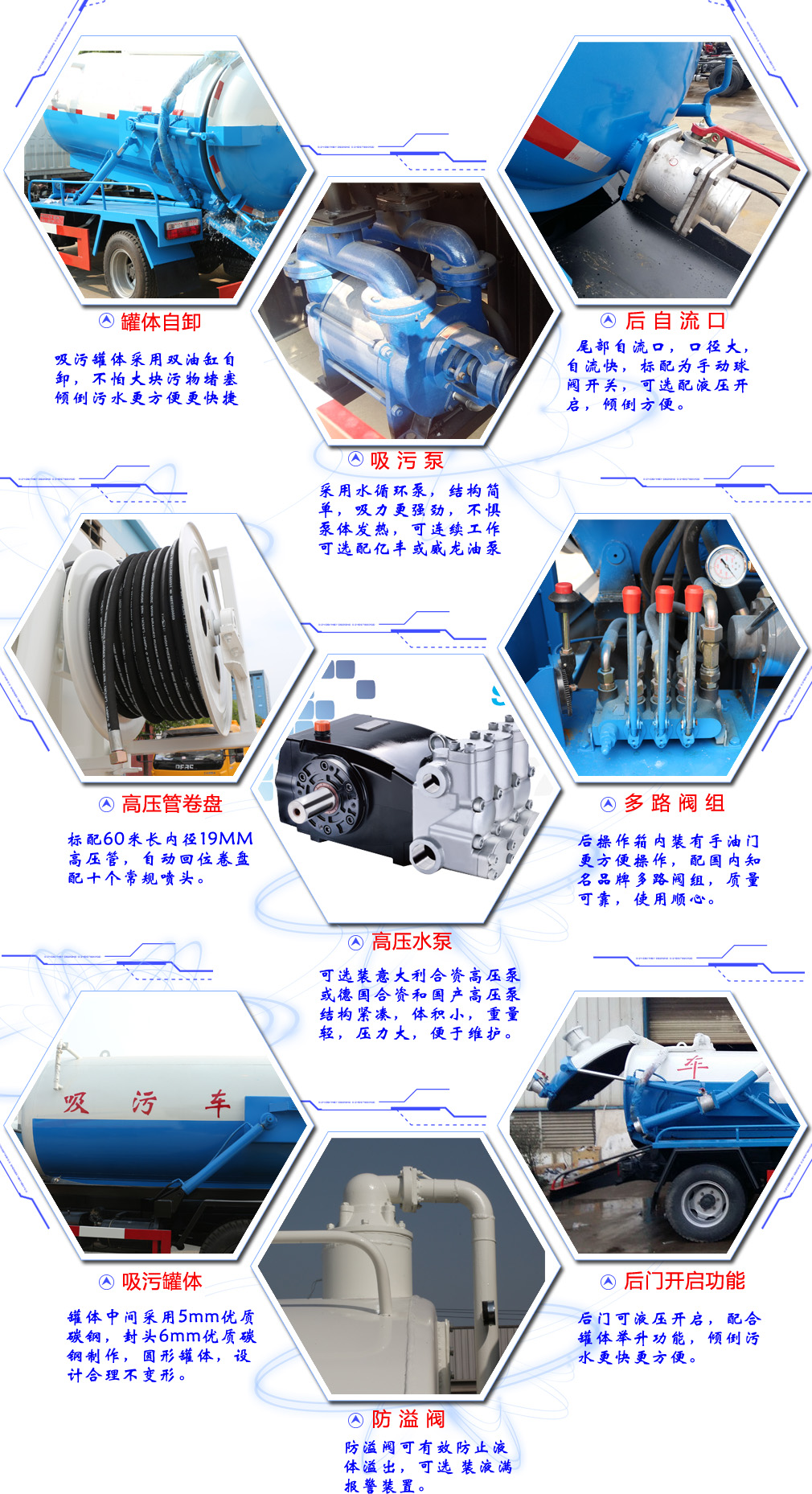 | 其他 | 随底盘选装驾驶室.罐体外形尺寸(直径×直段长)(mm):φ1550×4100,有效容积为7.45立方米,介质为:悬浮污物,密度:900千克/立方米。轴距/后悬对应关系为(mm):4700/2570;4500/2770.防护材料:Q235A碳钢,连接方式:左右侧面及后下部防护均采用焊接连接,后部防护断面尺寸(mm):230×50,后部防护离地高度(mm):480。该车安装带有卫星定位功能的行驶记录仪。ABS型号:3631010-C2000,4460046440;生产厂家:东科克诺尔商用车制动系统(十堰)有限 | ||